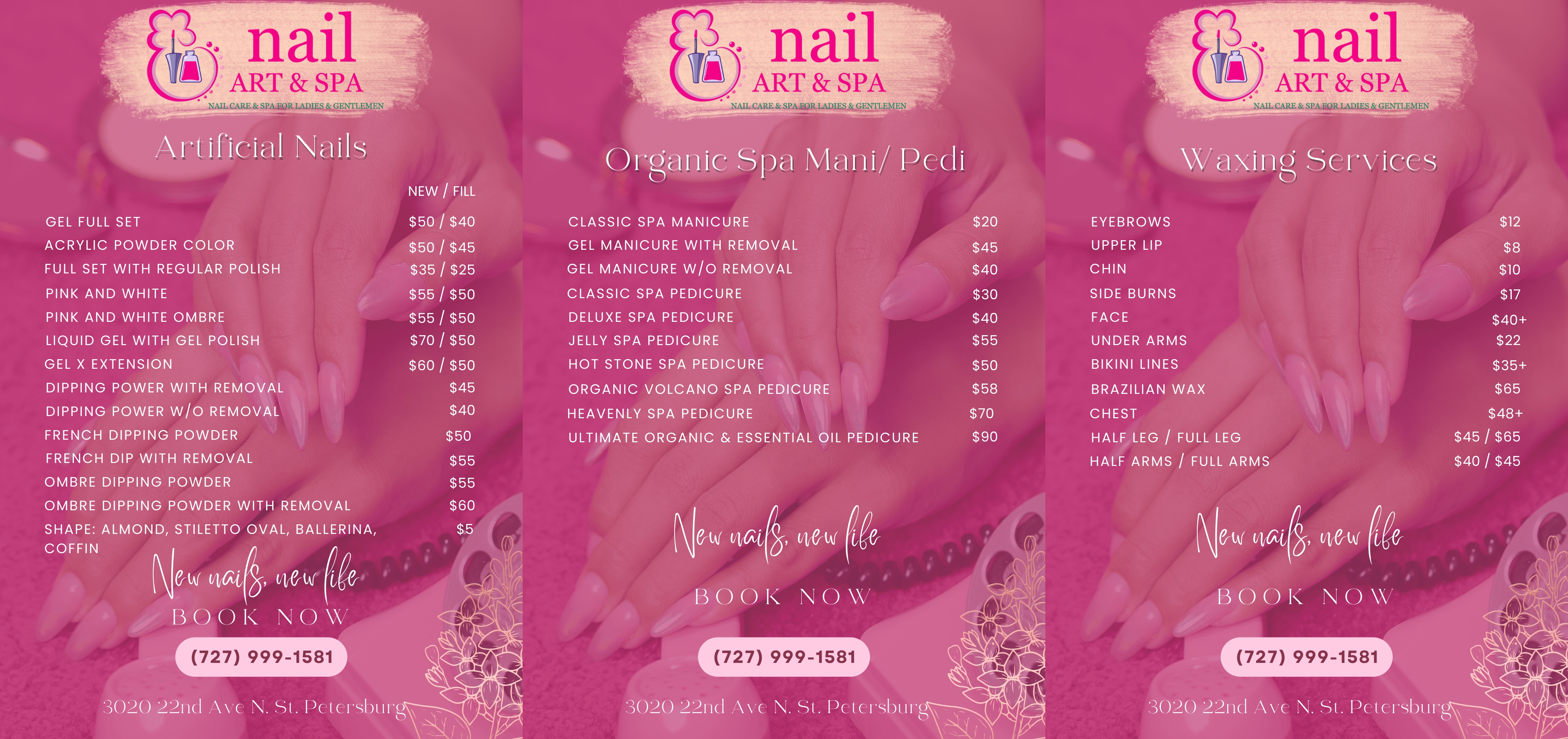 Nail Art & Spa is the premier experience for ladies and gentlemen seeking luxurious pampering, relaxation, and personal attention. We are the best nail & spa salon in St Petersburg and Tampa Bay Area!. We provide the best Natural Nails , Artificial Nails , Waxing Services and Other Spa Services in the greater St Petersburg area of Florida